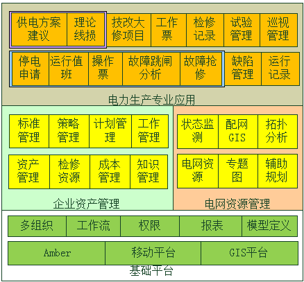 电力生产专业应用:以计划为龙头,以工单为核心,串联两票、缺陷、停电等专业管理,实现工作流程闭环管理。以及故障跳闸分析、理论线损、供电方案建议等应用。