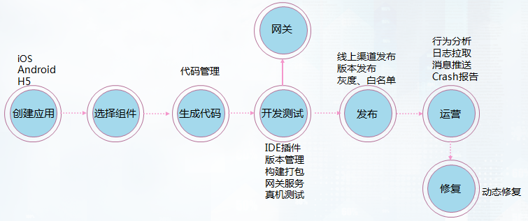 从前端组件、服务端组件、工具组件等方面,提供丰富的组件和强大的app框架,帮助开发者快速搭建自己的应用。开发者只需要添加自己的业务代码就能快速实现移动业务应用。