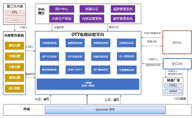 由于互联网基因的影响,使得OTT更加适合作为家庭智能互联网的土壤,培育家庭互联网生态,所以近些年越来越被运营商以及用户所选择。在流量爆发式增长的同时,需要有一套能够同时提供简洁的、便利的、开放的平台支撑业务发展,同时可借助平台打通整个产业链,提供整个产业链良性的、透明的、可监控的发展环境。