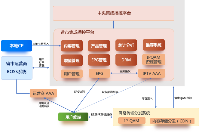 IPTV作为电视媒介与网络媒介融合的产物,网络和信息技术的深入发展正在推动IPTV产业的变革。在目前三网融合背景下,IPTV获得发展用户红利,IPTV行业用户数处于高速增长期。IPTV集成播控平台内涵和实质是对IPTV节目从播出端到用户端实现管理的播控系统,包括节目内容统一集成和播出控制、EPG、用户端、计费、版权等管理子系统。