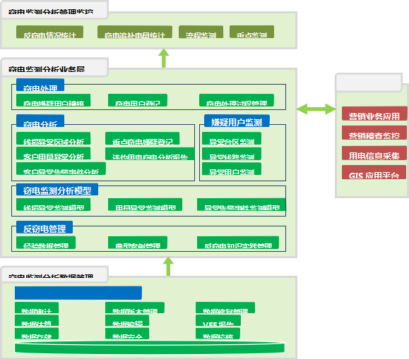 建立线损异常监测、用电异常监测、用电事件异常监测等多种分析模型,依照分析模型智能化监测窃电行为,实现事前预防、事中控制、事后跟踪的科学管理过程。